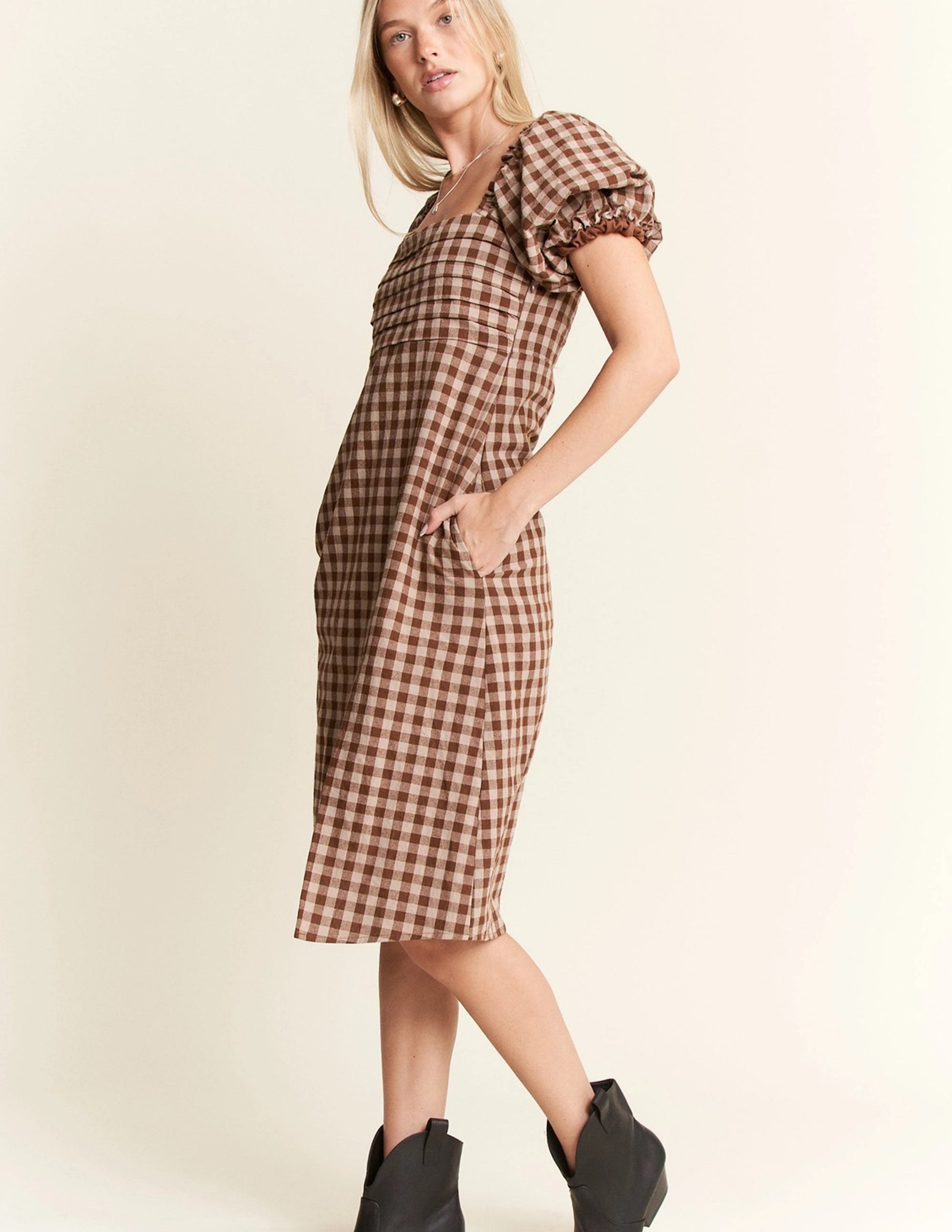 Elevate your wardrobe with this charming Gingham Puff Sleeve Dress, designed for curves and comfort. The playful gingham pattern pairs perfectly with romantic puff sleeves and a flattering knee-length cut. A cheeky mid-thigh slit keeps things fun, while the smocked back adds dimension and ease of movement. The convenient side zipper ensures a smooth fit every time. Crafted from breathable 100% cotton with a polyester lining, this dress is your go-to for effortless style that feels as good as it looks.
