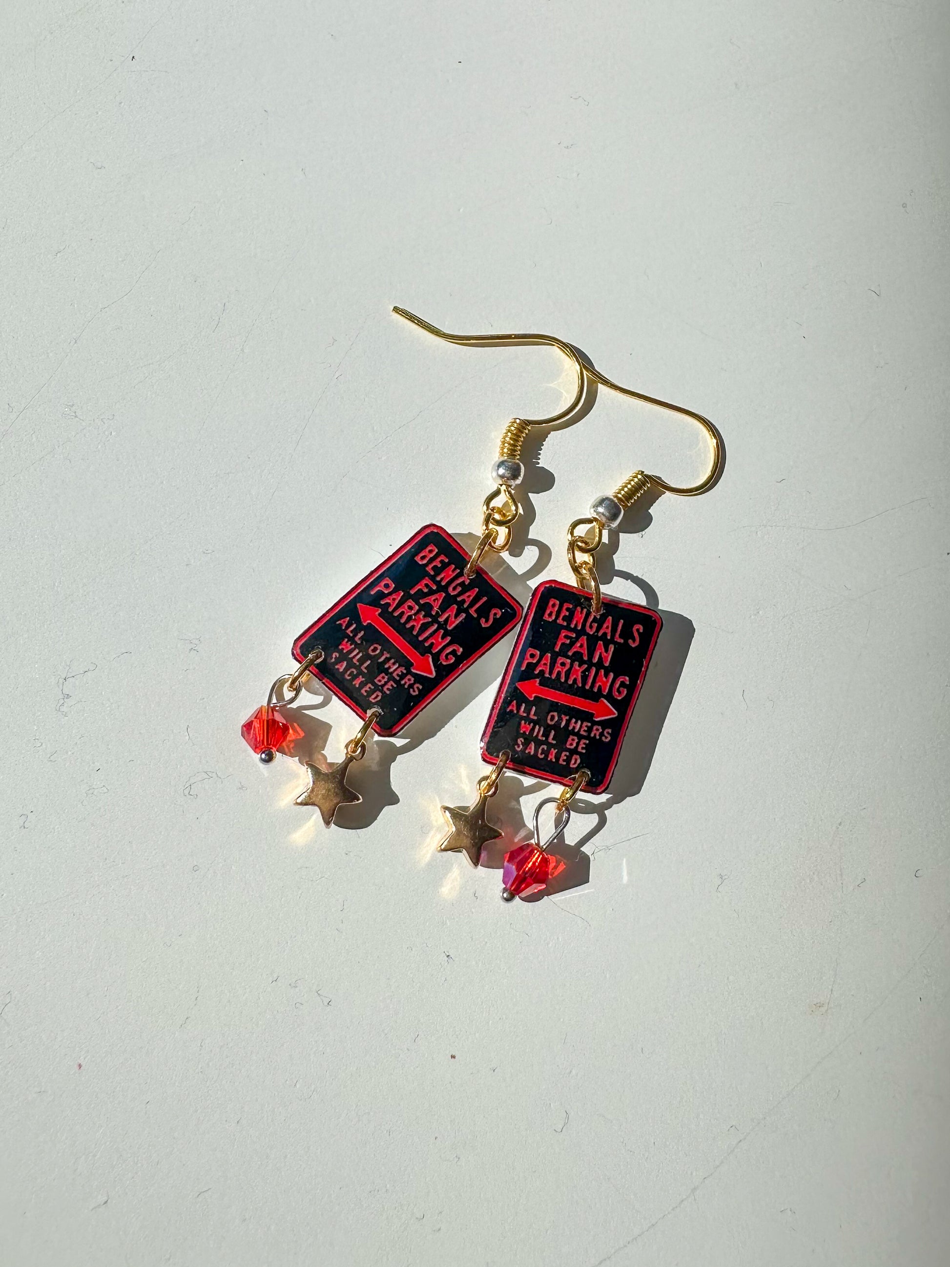 The Parking Lot Tailgating earrings feature cheeky Pop Charms styled like Bengals parking signs, paired with vintage-inspired findings and hardware. They’re light, fun, and perfect for anyone who knows the tailgate is just as important as the game.