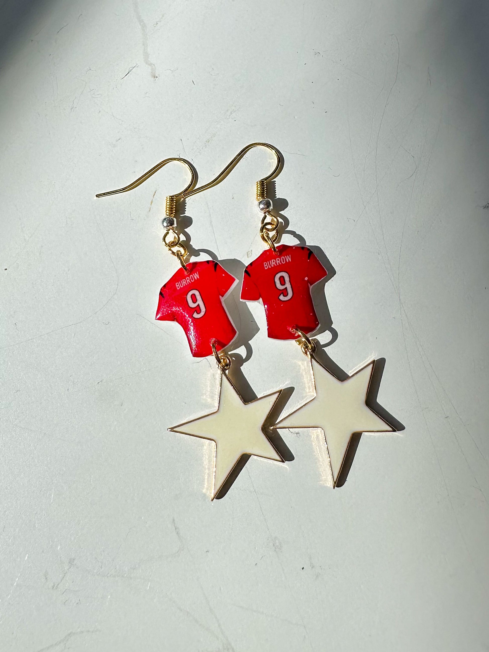 The Star Player earrings combine Pop Charms with jersey-inspired accents and dangling stars, plus a mix of vintage hardware for added texture. They’re bold, playful, and built to shine on game day or any day.