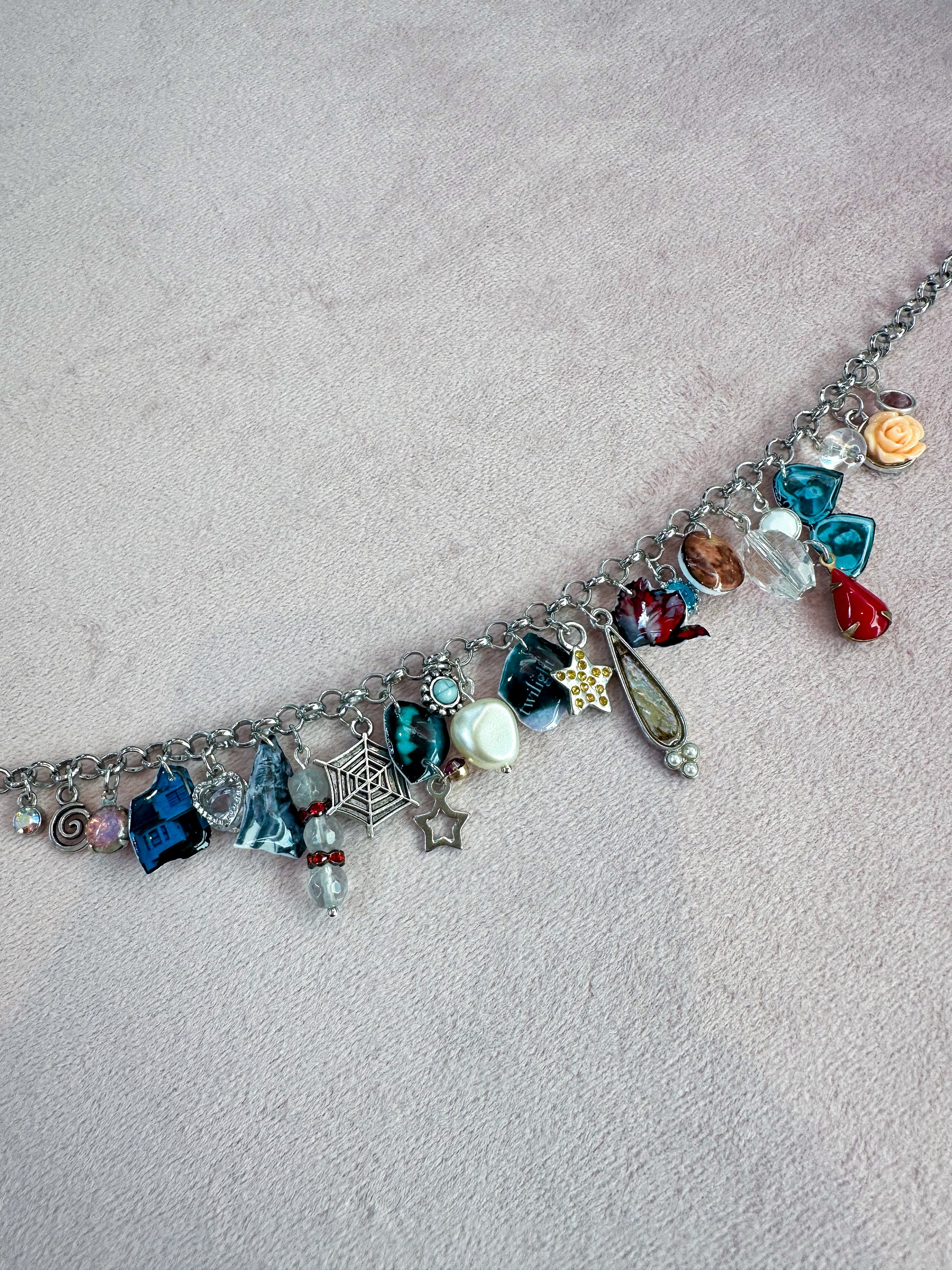 Capture the magic of eternal love with this Vampire Romance Necklace, inspired by Twilight's unforgettable charm. This playful necklace features a delicate design that evokes the allure of star-crossed lovers. Perfect for fans who want to wear a hint of mystery and romance wherever they go. Add a touch of supernatural passion to your accessory collection!