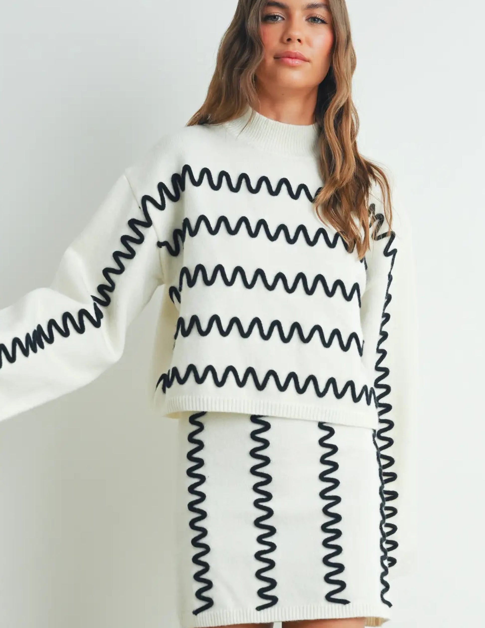 Introducing our Wavy Stripe Turtleneck Sweater - the perfect blend of style and comfort. This cozy sweater features a chic turtleneck design and a unique wavy stripe pattern that adds a touch of flair to your wardrobe. Crafted from high-quality materials, it's perfect for keeping warm while looking effortlessly stylish. Ideal for any casual or semi-formal occasion, this sweater is a must-have for your seasonal collection.